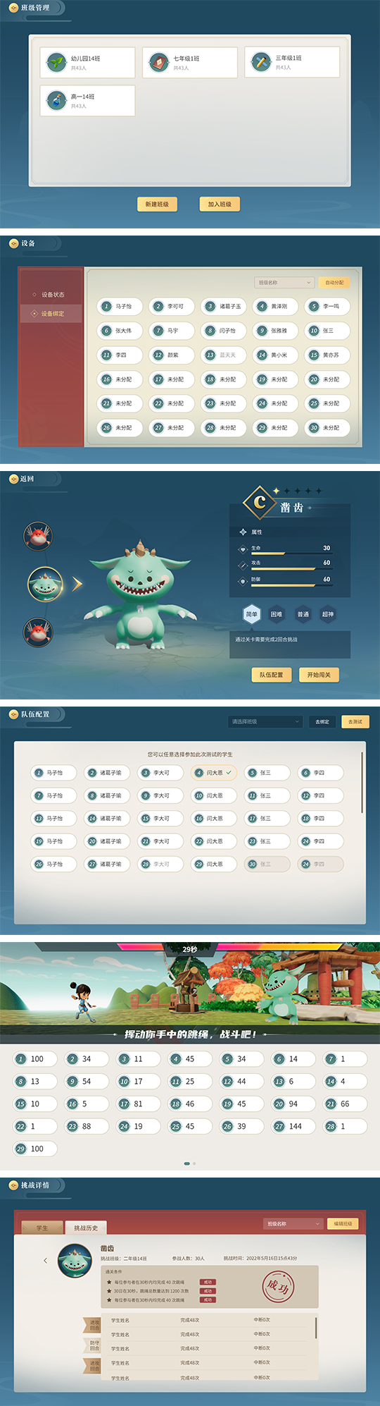 1、以国家设定的跳绳体测标准为依据,选取中位值作为运动能力目标,并按年龄和运动能力分设多个挑战关卡及难度,让参与者目标性更强。